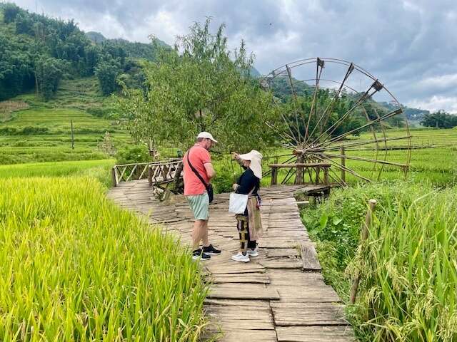 Daarna reisden we naar Sapa, in het noorden vlak bij de Chinese grens. Hier liepen we naar het dorpje Cat Cat, zagen we de mooie rijstterrassen en bezochten we de Thac Bac-waterval. De volgende dag met de kabelbaan naar de Fansipan Peak, de hoogste berg van Vietnam. Helaas stromende regen, de hele dag, de uitlopers van een cycloon. Na een nacht in de trein terug naar Hanoi stapten we aan boord van een prachtige boot (Orchide Cruise) voor een prachtige tocht door Halong Bay. We hadden veel geluk. Toen we aankwamen was het nog bewolkt, maar al snel trok de lucht open en genoten we van deze schitterende baai. Orchide Cruise was een topper van deze reis. Hospitality tot in de kleinste details door het jonge, gedreven team van Mr. Dong.